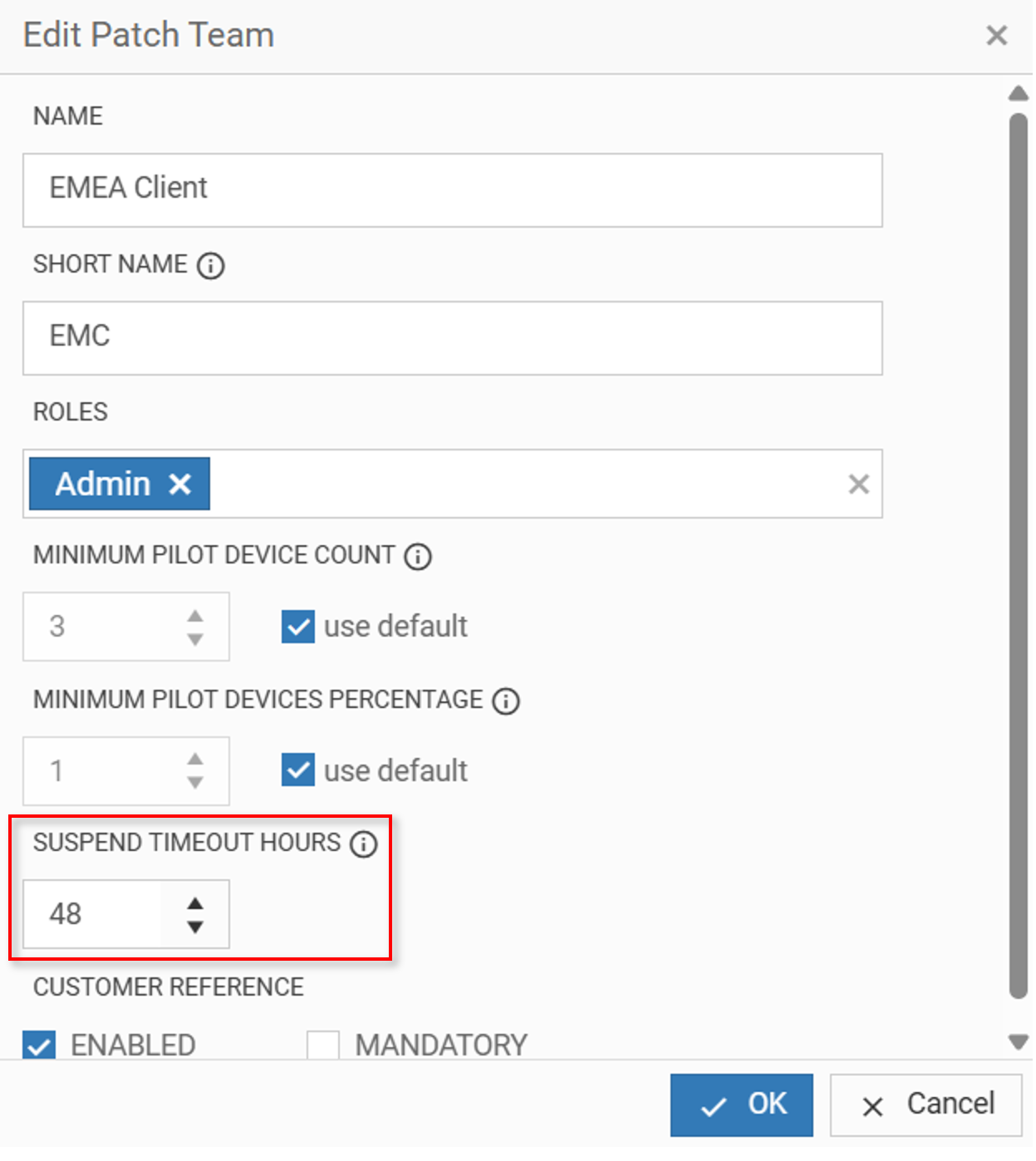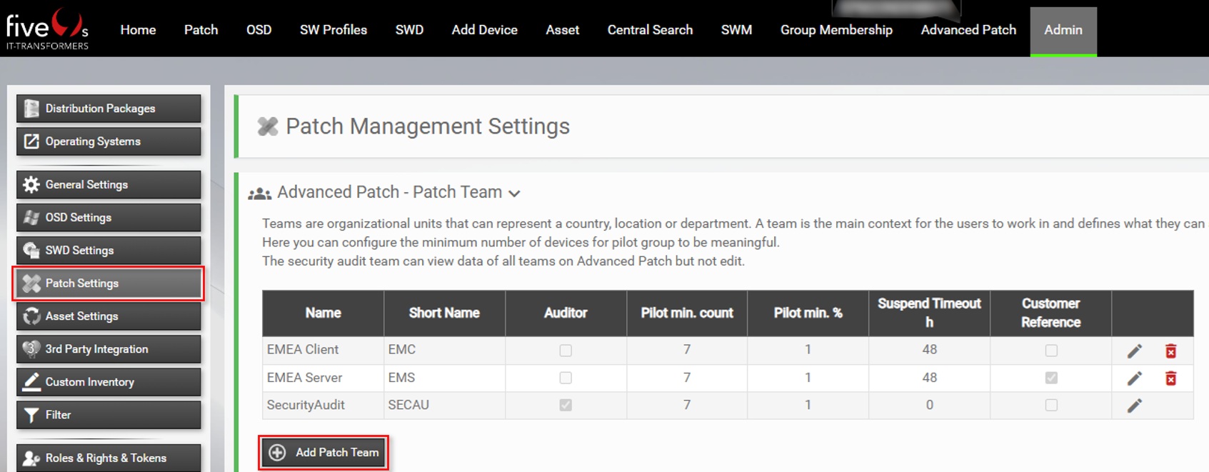 Give your team a name and short name, assign a five(9)s Console role and set a minimum pilot device count (either as a total number or a percentage). Only users with the assigned role can view this team’s patch deployments.