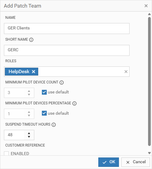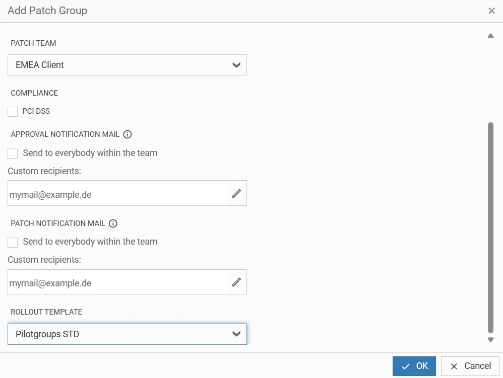 Click on Add Patch Team to create a user group, responsible for patch management of certain device groups. You will see the following dialog: