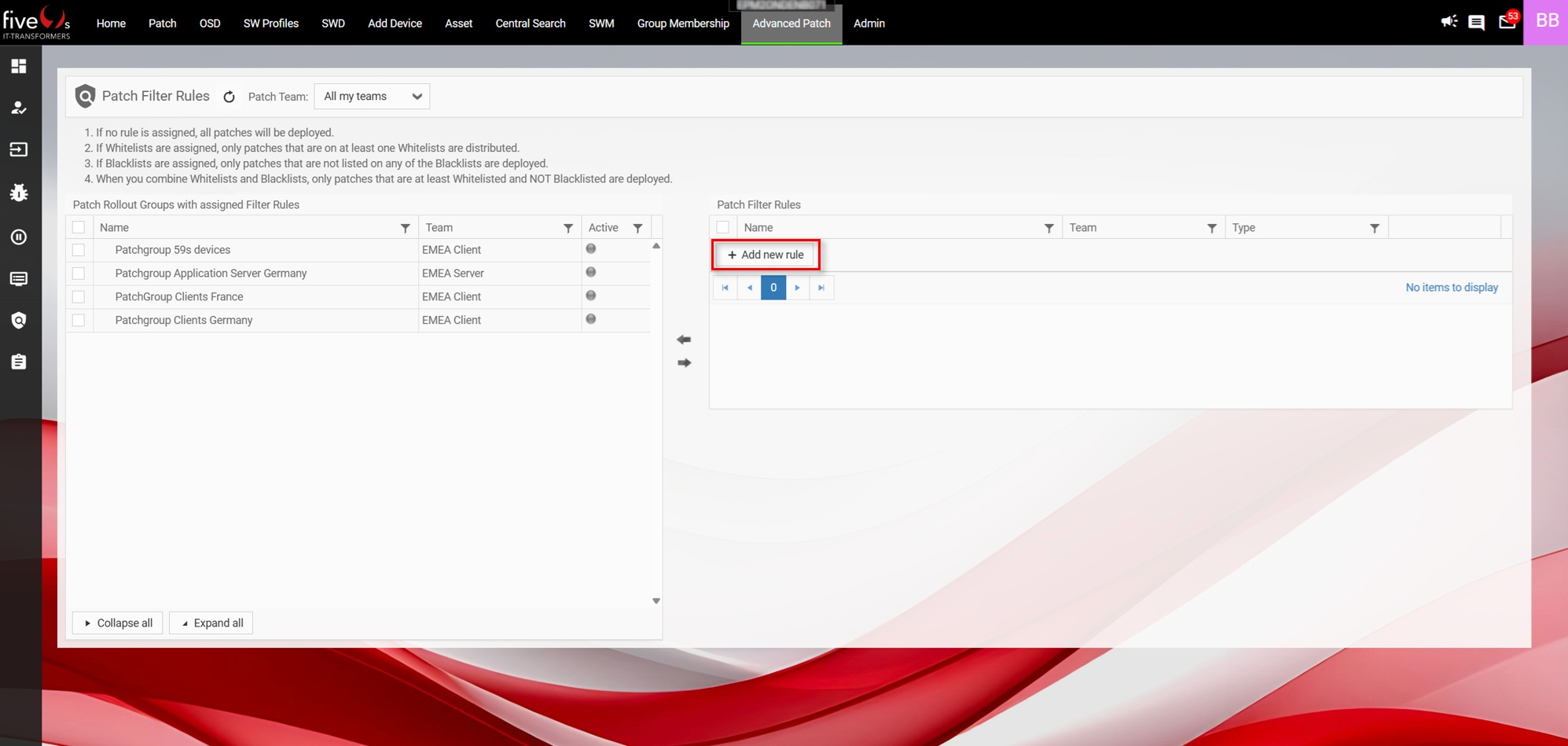 - Choose your Patch Rule type (Whitelist / Blacklist)