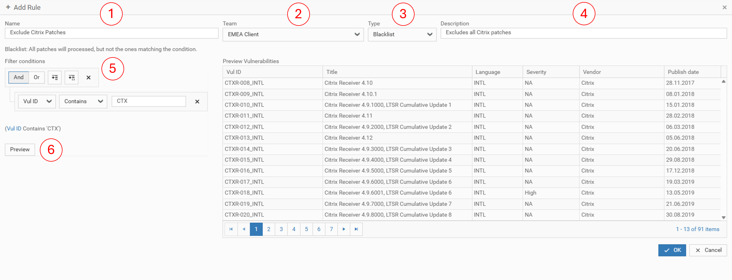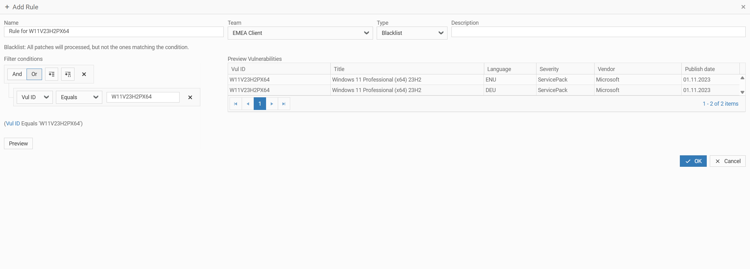 - Click on Preview, to check which vulnerabilities are effected by your Patch Filter Rule